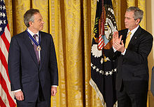 In an address before both Houses of Congress on September 20, 2001, Bush thanked the nations of the world for their support following the September 11 attacks. He specifically thanked U.K. Prime Minister Tony Blair for traveling to Washington to show "unity of purpose with America", and said "America has no truer friend than Great Britain."
