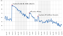 Bush began his presidency with approval ratings near 50%. After the September 11 attacks, Bush gained an approval rating of 90%, maintaining 80–90% approval for four months after the attacks. It remained over 50% during most of his first term and then fell to as low as 19% in his second term.