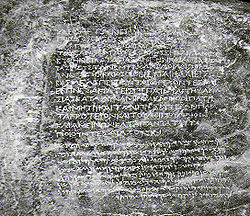 - "The conquest by Dharma has been won here, on the borders, and even six hundred yojanas (4,000 miles) away, where the Greek king Antiochos (Antiyoga) rules, and beyond there where the four kings named Ptolemy (Turamaya), Antigonos (Antikini), Magas (Maka) and Alexander (Alikasu[n]dara) rule, likewise in the south among the Cholas, the Pandyas, and as far as Tamraparni." ( Rock Edict Nb.13).