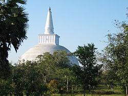 Also the Mahavamsa (Chap. XXIX) records that during Menander's reign, "a Greek (" Yona") Buddhist head monk" named Mahadharmaraksita (literally translated as 'Great Teacher/Preserver of the Dharma') led 30,000 Buddhist monks from "the Greek city of Alexandria" (possibly Alexandria-of-the-Caucasus, around 150 km north of today's Kabul in Afghanistan), to Sri Lanka for the dedication of a stupa, indicating that Buddhism flourished in Menander's territory and that Greeks took a very active part in it.