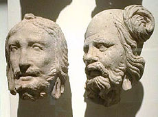 Many of the stylistic elements in the representations of the Buddha point to Greek influence: the Greco-Roman toga-like wavy robe covering both shoulders (more exactly, its lighter version, the Greek himation), the contrapposto stance of the upright figures (see: 1st–2nd century Gandhara standing Buddhas), the stylicized Mediterranean curly hair and topknot ( ushnisha) apparently derived from the style of the Belvedere Apollo (330 BCE), and the measured quality of the faces, all rendered with strong artistic realism (See: Greek art). A large quantity of sculptures combining Buddhist and purely Hellenistic styles and iconography were excavated at the Gandharan site of Hadda. The 'curly hair' of Buddha is described in the famous list of 32 external characteristics of a Great Being (mahapurusa) that we find all along the Buddhist sutras. The curly hair, with the curls turning to the right is first described in the Pali canon; we find the same description in e.g. the "Dasasahasrika Prajnaparamita".