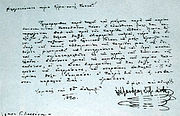 | "Fight for Faith and Motherland! The time has come, O Hellenes. Long ago the people of Europe, fighting for their own rights and liberties, invited us to imitation ... The enlightened peoples of Europe are occupied in restoring the same well-being, and, full of gratitude for the benefactions of our forefathers towards them, desire the liberation of Greece. We, seemingly worthy of ancestral virtue and of the present century, are hopeful that we will achieve their defense and help. Many of these freedom-lovers want to come and fight alongside us ... Who then hinders your manly arms? Our cowardly enemy is sick and weak. Our generals are experienced, and all our fellow countrymen are full of enthusiasm. Unite, then, O brave and magnanimous Greeks! Let national phalanxes be formed, let patriotic legions appear and you will see those old giants of despotism fall themselves, before our triumphant banners." |