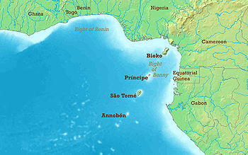 The Gulf of Guinea is the part of the Atlantic Ocean west of Africa. The intersection of the Equator and Prime Meridian (zero degrees latitude and longitude) is in the gulf.