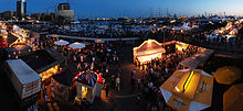 Hamburg is noted for several festivals and regular events. Some of them are street festivals, such as the gay pride Christopher Street Day festival or the Alster fair, held at the Binnenalster. The Hamburger DOM is northern Germany's biggest fun fair, held three times a year. Hafengeburtstag is a funfair to honour the birthday of the port of Hamburg with a party and a ship parade. The biker's service in Saint Michael's Church attracts tens of thousands of bikers. Christmas markets in December are held at the Hamburg Rathaus square, among other places. The long night of museums offers one entrance fee for about 40 museums until midnight. The sixth Festival of Cultures was held in September 2008, celebrating multi-cultural life. The Filmfest Hamburg — a film festival originating from the 1950s Film Days (German: Film Tage) — presents a wide range of films. The Hamburg Messe and Congress offers a venue for trade shows, such hanseboot, an international boat show, or Du und deine Welt, a large consumer products show. Regular sports events—some open to pro and amateur participants—are the cycling competition Vattenfall Cyclassics, the Hamburg Marathon, the biggest marathon in Germany after Berlin, the tennis tournament Hamburg Masters and equestrian events like the Deutsches Derby. Since 2007, Hamburg has the Dockville music and art festival. It takes place every year in summer in Wilhelmsburg.