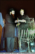 One of the earliest links with the White House occurred in 1951, when Israeli Prime Minister David Ben-Gurion presented United States President Harry Truman with a Hanukkah Menorah. But it was not until 1979 that a sitting president, Jimmy Carter took part in a public Hanukkah candle-lighting ceremony on the National Mall, followed by the first Hanukkah candle-lighting ceremony in the White House itself, led by President Bill Clinton.