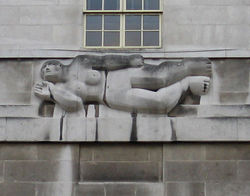 Moore produced at least three significant examples of architectural sculpture during his career. In 1928, despite his own self-described "extreme reservations", he accepted his first public commission for West Wind for the London Underground Building at 55 Broadway in London, joining the company of Jacob Epstein and Eric Gill. In 1952, he completed a four-part concrete screen for the Time-Life Building in New Bond Street, London, and in 1955 Moore turned to his first and only work in carved brick, "Wall Relief no. 1" at the Bouwcentrum in Rotterdam. The brick relief was sculptured with 16,000 bricks by two Dutch bricklayers.