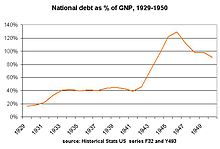 National debt as a fraction of GNP up from 20% to 40% under Hoover. From Historical Statistics US (1976)