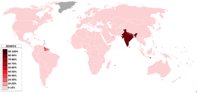 Countries with the greatest proportion of Hindus from Hinduism by country (as of 2008):