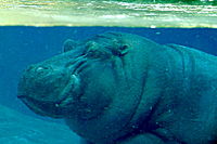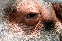 The hippopotamus (Hippopotamus amphibius), from the Greek ἱπποπόταμος (hippopotamos, ιππος hippos meaning "horse" and πόταμος potamus meaning "river"), often shortened to "hippo", is a large, mostly plant-eating African mammal, one of only two extant species in the family Hippopotamidae (the other being the Pygmy Hippopotamus).