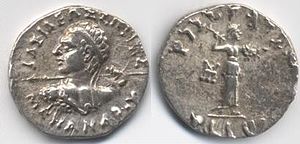 Obv: Greek legend, BASILEOS SOTEROS MENANDROY lit. "of the Saviour King Menander".