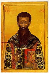 Icon depicting the Emperor Constantine (centre) and the bishops of the First Council of Nicaea (325) holding the Niceno–Constantinopolitan Creed of 381.