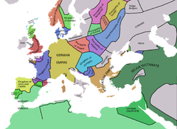 Europe in 1050, at the time the Holy Roman Empire reached its peak under Heinrich III.
