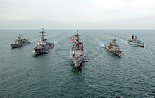 HMAS Anzac and HMAS Darwin with United States and British warships in late 2002