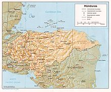 Honduras ( / h ɒ n ˈ d ʊər ə s /), officially the Republic of Honduras (Spanish: República de Honduras [reˈpuβlika ðe onˈduɾas]), is a republic in Central America. It was at times referred to as Spanish Honduras to differentiate it from British Honduras, which became the modern-day state of Belize. The country is bordered to the west by Guatemala, to the southwest by El Salvador, to the southeast by Nicaragua, to the south by the Pacific Ocean at the Gulf of Fonseca, and to the north by the Gulf of Honduras, a large inlet of the Caribbean Sea.