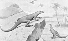 Early paleontologists modelled the body of this small, bipedal, herbivorous dinosaur in various ways. In 1882 Hulke suggested that Hypsilophodon was quadrupedal but also, in view of its grasping hand, able to climb rocks and trees in order to seek shelter. In 1912 this line of thought was further pursued by Austrian paleontologist Othenio Abel. Concluding that the first toe of the foot could function as an opposable hallux, Abel stated that Hypsilophodon was a fully arboreal animal and even that an arboreal lifestyle was primitive for the dinosaurs as a whole. Though this hypothesis was doubted by Nopcsa, it was adopted by the Danish researcher Gerhard Heilmann who in 1916 proposed that a quadrupedal Hypsilophodon lived like the modern tree-kangaroo Dendrolagus. In 1926 Heilmann had again changed his mind, denying that the first toe was opposable because the first metatarsal was firmly connected to the second, but in 1927 Abel refused to accept this. In this he was in 1936 supported by Swinton who claimed that even a forward pointing first metatarsal might carry a movable toe. As Swinton was a very influential populariser of dinosaurs, this remained the accepted view for over three decades, most books typically illustrating Hypsilophodon sitting on a tree branch. However, Peter M. Galton in 1969 performed a more accurate analysis of the musculo-skeletal structure, showing that the body posture was horizontal. In 1971 Galton in detail refuted Abel's arguments, showing that the first toe had been incorrectly reconstructed and that neither the curvature of the claws, nor the level of mobility of the shoulder girdle or the tail could be seen as adaptations for climbing, concluding that Hypsilophodon was a bipedal running form. This convinced the paleontological community that Hypsilophodon remained firmly on the ground.
