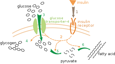 Two types of tissues are most strongly influenced by insulin, as far as the stimulation of glucose uptake is concerned: muscle cells ( myocytes) and fat cells ( adipocytes). The former are important because of their central role in movement, breathing, circulation, etc., and the latter because they accumulate excess food energy against future needs. Together, they account for about two-thirds of all cells in a typical human body.