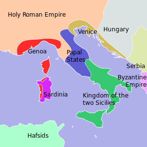 By the Late Middle Ages ( circa 1300 onward ), Latium, the heartland of the Roman Empire, and southern Italy, was poorer than the north. Rome was a city of ancient ruins, and the Papal States were loosely administered, and vulnerable to external interference such as that of France and later Spain. The Papacy was affronted when the Avignon Papacy was created in southern France as a consequence of pressure from King Philip the Fair of France. In the south, Sicily had for some time been under foreign domination, by the Arabs and then the Normans. Sicily had prospered for 150 years during the Emirate of Sicily and later for two centuries during the Norman Kingdom and the Hohenstaufen Kingdom, but had declined by the late Middle Ages.