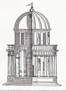 The High Renaissance, as we call the style today, was introduced to Rome with Donato Bramante's Tempietto at San Pietro in Montorio (1502) and his original centrally planned St. Peter's Basilica (1506), which was the most notable architectural commission of the era, influenced by almost all notable Renaissance artists, including Michelangelo and Giacomo della Porta. The beginning of the late Renaissance in 1550 was marked by the development of a new column order by Andrea Palladio. Colossal columns that were two or more stories tall decorated the facades.