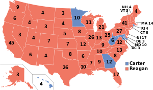 By 1980, Carter's popularity had eroded. He survived a primary challenge against Ted Kennedy for the Democratic Party nomination in the 1980 election, but lost the election to Ronald Reagan, the Republican candidate. On January 20, 1981, minutes after Carter's term in office ended, the 52 U.S. captives held at the U.S. embassy in Iran were released, ending the 444-day Iran hostage crisis.
