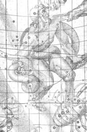 The location of the stella nova, in the foot of Ophiuchus, is marked with an N (8 grid squares down, 4 over from the left).