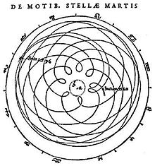 Diagram of the geocentric trajectory of Mars through several periods of apparent retrograde motion. Astronomia nova, Chapter 1, (1609).
