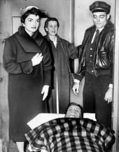 Kennedy lying on a gurney following spinal surgery, accompanied by Jackie, December 1954