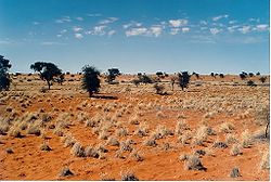 Despite its aridity, the Kalahari supports a variety of fauna and flora. The native flora includes acacia trees and many other herbs and grasses. The Kiwano fruit, also known as the Horned Melon, melano, African horned cucumber, jelly melon, hedged gourd, and/or English tomato, is endemic to a region in the Kalahari Desert (*specific region unknown).