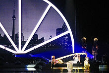 At the 2000 Sydney Olympics closing ceremony, Minogue performed ABBA's " Dancing Queen" and her single "On a Night like This". She then embarked on the On A Night Like This Tour, which played to sell-out crowds in Australia and the United Kingdom. The tour incorporated Burlesque and theatre and cited the style of Broadway shows such as 42nd Street, films such as Anchors Aweigh, South Pacific, the Fred Astaire and Ginger Rogers musicals of the 1930s and the live performances of Bette Midler. She was praised for her new material and her reinterpretations of some of her greatest successes. She won a " Mo Award" for Australian live entertainment as "Performer of the Year". She also appeared in the 2001 film, Moulin Rouge as "The Green Fairy".