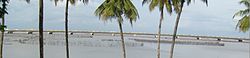 Lagos is a metropolitan area which originated on islands separated by creeks, such as Lagos Island, fringing the southwest mouth of Lagos Lagoon while protected from the Atlantic Ocean by long sand spits such as Bar Beach, which stretch up to 100 km east and west of the mouth. From the beginning, Lagos has expanded on the mainland west of the lagoon and the conurbation, including Ikeja and Agege, now reaches more than 40 km north-west of Lagos Island. Some suburbs include Ikorodu, Epe and Badagry, and more local councils have recently been created, bringing the total number of local governments in Lagos to 57.