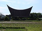 Most of the people who live around Lake Toba are ethnically Bataks. Traditional Batak houses are noted for their distinctive roofs (which curve upwards at each end, as a boat's hull does) and their colorful decor.