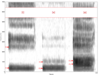 Spectrogram of American English vowels [i, u, ɑ] showing the formants f1 and f2