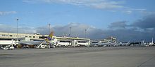 Las Palmas is served by Gran Canaria Airport, often called Las Palmas Airport ( IATA: LPA ICAO: GCLP). In 2008, it handled 10,212,106 passengers,. This airport handled 33,695,248 kg of cargo, and is the fourth busiest in Spain. It is also the only airport on the islands with two runways, thus can accommodate up to 53 landings and take-offs per hour. The lengthy runways made the airport an alternative landing site for the NASA Space Shuttle. Also this airport is a base for Binter Canarias and Navegacion y Servicios Aéreos Canarios, airlines which operate regional inter-island flights within the Canary Islands. The Airport is located in the eastern part of the island, about 18 km (11 mi) from the Las Palmas city centre.