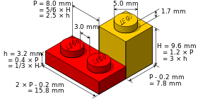 The Lego Group's Duplo product line, introduced in 1969, is a range of simple blocks which measure twice the width, height and depth of standard Lego blocks, and are aimed at younger children.