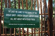 Sign at the viewing deck of the Limpopo River at Mapungubwe National Park, South Africa.