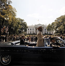 Perhaps the most famous Lincoln Presidential state car was a 1961 Lincoln Continental convertible, custom built by Hess and Eisenhart of Cincinnati, and known as the SS-100-X, designed for use by John F. Kennedy. Designed to be an open-top car to give the President better visibility and a better ability to interact with citizens, it also included a " plexiglas" bubble top to be used in the event of inclement weather. The 1961 vehicle was notorious for its inadequate cooling of the rear of the passenger cabin while the bubble top was in place, particularly in sunshine. In order to prevent excessive heat and discomfort to the passengers, the top was often removed prior to parades. It was in the back of this car that Kennedy was assassinated. Due to security concerns following Kennedy's assassination, it was temporarily removed from service. While it was originally thought that Kennedy's successor, Lyndon Johnson, had ordered it destroyed, it instead was retrofitted with armor plating and a fixed, permanent sedan roof. It reentered service and was used by Johnson and his successor, Richard Nixon. It was eventually retired in 1977 and is now on display at the Henry Ford Museum in Dearborn, Michigan. The Johnson Administration also used three 1965 Lincoln Continental Executive limousines: Two limousines for the President and one for Secretary of Defense Robert McNamara, as well as a 1968 "stretch" Lincoln to be used in Washington, D.C., and Austin, Texas. This vehicle is on display at the Lyndon Baines Johnson Library and Museum.