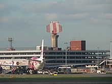 In early 2013, demolition of the original 1950s red brick control tower began to enable access roads to the new Terminal 2 be laid. The structure was originally designed by Frederick Gibberd and opened in 1955.