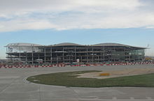 The main terminal building (Concourse A) has an area of 300,000 square metres (3,200,000 sq ft) while Concourse B covers 60,000 square metres (650,000 sq ft). It has 60 aircraft stands and capacity for 30 million passengers annually as well as more than 100 shops and restaurants.
