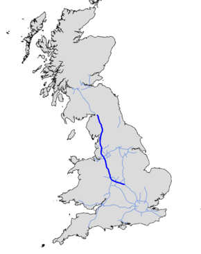 Rugby, Coventry, Nuneaton, Birmingham, Walsall, Wolverhampton, Stafford, Stoke-on-Trent, Warrington, Wigan, Manchester, Liverpool, Preston, Lancaster, Kendal, Penrith, Carlisle, Winsford