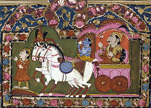 The Mahabharata itself ends with the death of Krishna, and the subsequent end of his dynasty and ascent of the Pandava brothers to heaven. It also marks the beginning of the Hindu age of Kali ( Kali Yuga), the fourth and final age of mankind, in which great values and noble ideas have crumbled, and man is heading toward the complete dissolution of right action, morality and virtue.