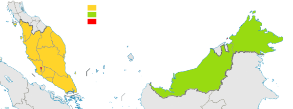 A map of Malaysia depicting the expected 2010 estimated population density.
