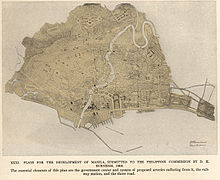 Manila, being the seat of political power of the Philippines, has several national government offices headquartered at the city. Planning for the development for being the centre of government started during the early years of American colonization to the country when they envisioned a well-designed city outside the walls of Intramuros. The strategic location chosen was Bagumbayan, a former town which is now the Rizal Park to become the centre of government and a design commission was given to Daniel Burnham to create a master plan for the city patterned after Washington D.C.. These improvements were eventually abandoned under the Commonwealth Government of Manuel L. Quezon.