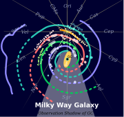 Each spiral arm describes a logarithmic spiral (as do the arms of all spiral galaxies) with a pitch of approximately 12 degrees. There are believed to be four major spiral arms which all start at the Galaxy's centre. These are named as follows, according to the image at left: