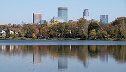 | Downtown seen from Lake of the Isles | |||