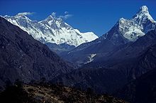 Left to right: Mount Everest, Lhotse and Ama Dablam in the Himalayas