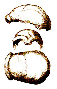 The type specimen, dubbed Neanderthal 1, consisted of a skull cap, two femora, three bones from the right arm, two from the left arm, part of the left ilium, fragments of a scapula, and ribs. The workers who recovered this material originally thought it to be the remains of a bear. They gave the material to amateur naturalist Johann Carl Fuhlrott, who turned the fossils over to anatomist Hermann Schaaffhausen. The discovery was jointly announced in 1857.