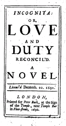 The term novel – today in a twisted history (see below) connected with the appearance of Daniel Defoe's Robinson Crusoe (1719) – has been present on the market since the 16th century. William Painter's Palace of Pleasure well furnished with pleasaunt Histories and excellent Novelles (1566) was the first English title to use it. Compared with "romances", "novelles", "novellas" or "novels" (all these words meant the same, "novel" became the standard term in the 1650s) had to be short. They had to give up all aspirations on grandeur, heroism and the style romantic heroes and their actions required. "Romances" focused on lonely heroes and their adventures, "novels" on revealing incidents that could serve as examples for moral maxims. The titles of "romances" put their respective heroes' and heroines' names front and centre: "Artamene", "Clelie" were the heroes of "heroic romances". "Satirical romances" did the same with their lower class protagonists. The additional "Adventures of" would later emphasize the focus on acts of heroism. The titles of "novels" preferred a two part formula "[...] or [...]" in order to state the value of the incident related. William Congreve's Incognita or Love and Duty Reconcil'd (1692) was typical in this respect. The protagonists of "novels" were actors in a plot, in an intrigue, and it was the plot that gave the example and taught the vital lessons. These protagonists could be average human beings without any special signs of grandeur, neither comical nor imitable but of the same nature as their readers; they would by and large show problematic character traits. Unlike romances, the protagonists were not role models: instead, the surprising results of their actions taught the lessons.