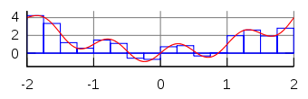 \int_a^b f(x)\,dx \approx \frac{b-a}{n} \left( {f(a) \over 2} + \sum_{k=1}^{n-1} \left( f \left( a+k \frac{b-a}{n} \right) \right) + {f(b) \over 2} \right)