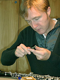 Oboist Albrecht Mayer preparing reeds for use. Oboists scrape their own reeds to achieve the desired tone and response.