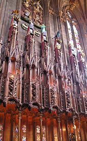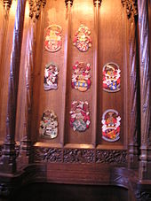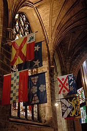 Upon the death of a Knight, helm, mantling, crest (or coronet or crown) and sword are taken down. The stall plates, however, are not removed; rather, they remain permanently affixed to the back of the stall, so that the stalls of the chapel are festooned with a colourful record of the Order's Knights (and now Ladies) since 1911. The entryway just outside the doors of the chapel has the names of the Order's Knights from before 1911 inscribed into the walls giving a complete record of the members of the order.