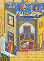 Kelileh va Demneh Persian manuscript copy dated 1429, from Herat, depicts the Jackal trying to lead the Lion astray.